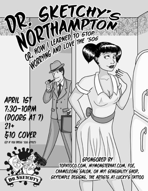 This April first, Dr. Sketchy's Northampton is proud to celebrate that time and place where America was at its greatest: the suburban nightmare that was the 1950s! When values were at their most wholesome (thanks to the swell old American tradition of repression!) and our ideological focus was clear: defeating Communism by buying as many appliances as we possibly could!