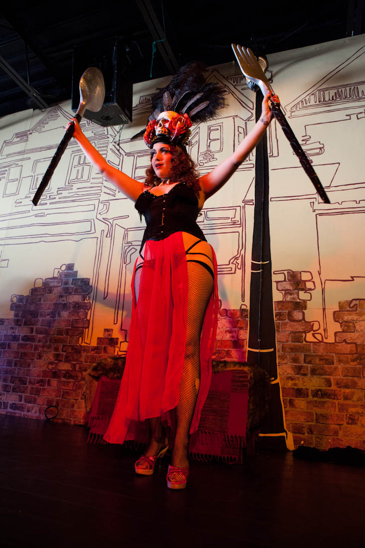 The delectable collectible Dolly Berlin from Great Canadian Burlesque started off the evening with her glamorous, pin-up cannibal.