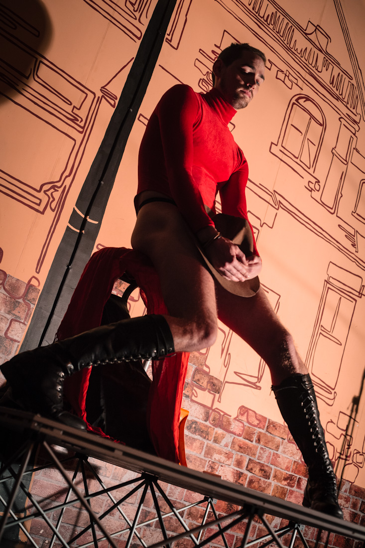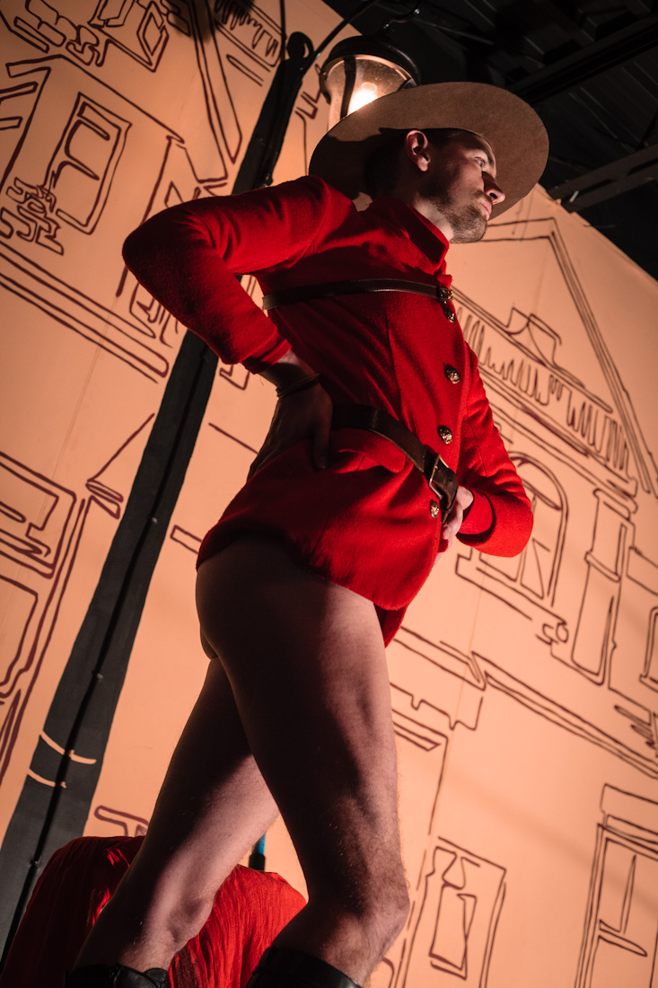 On Friday, April 4th, the devilishly handsome Dew Lily stripped out of a Royal Canadian Mounted Police officer costume. There was deep fried Mars bars on the menu and Stompin' Tom Connors on the playlist. Burlesque stand up comedian Gracie Klutz told Canuck jokes while rocking a toque with short shorts. Oh, Canada!