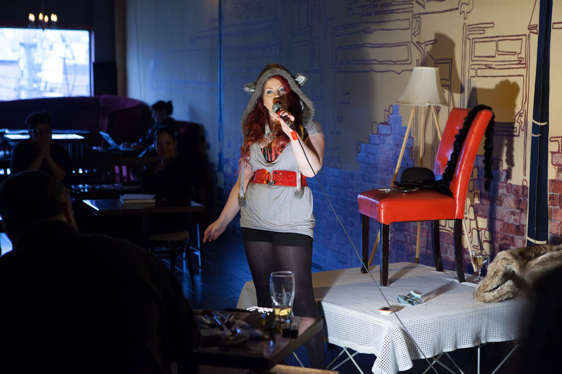 Volumptuous ginger Red Herring hosted the evening while dressed as The Medium Sized Wolf. Aroooo!