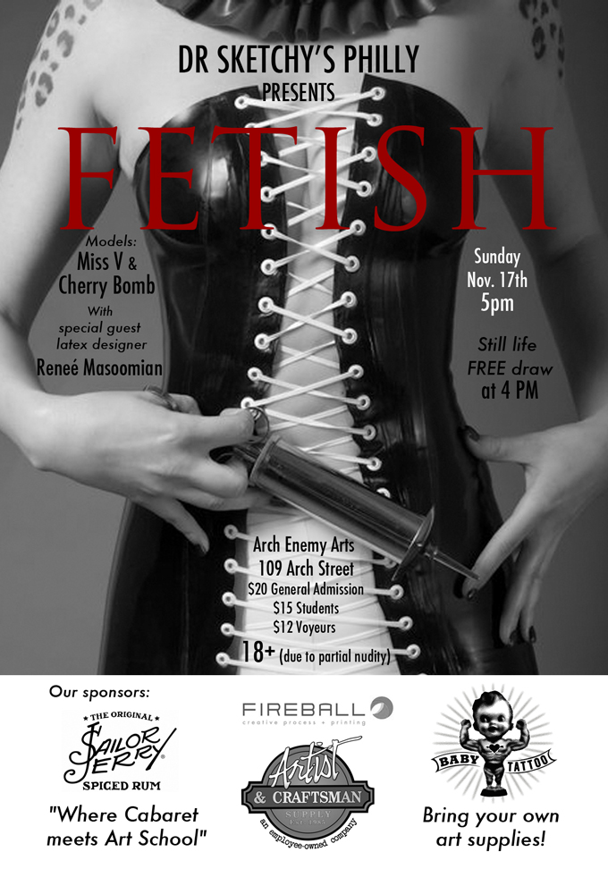 5pm, Dr. Sketchy Philadelphia teams up with Latex Designer Renee Masoomian for