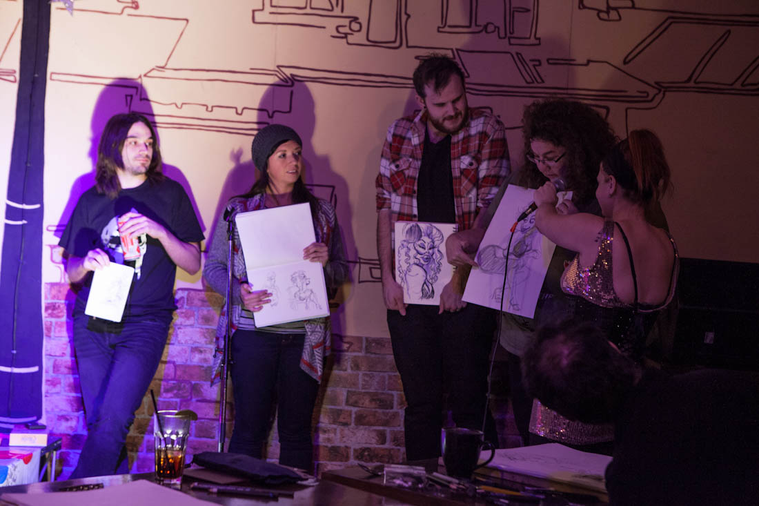 Capping off the night, we had our favourite of all art contests, Model's Pick. These sketches below are by Francis Foster (ink) and Pam Rose (pencil).