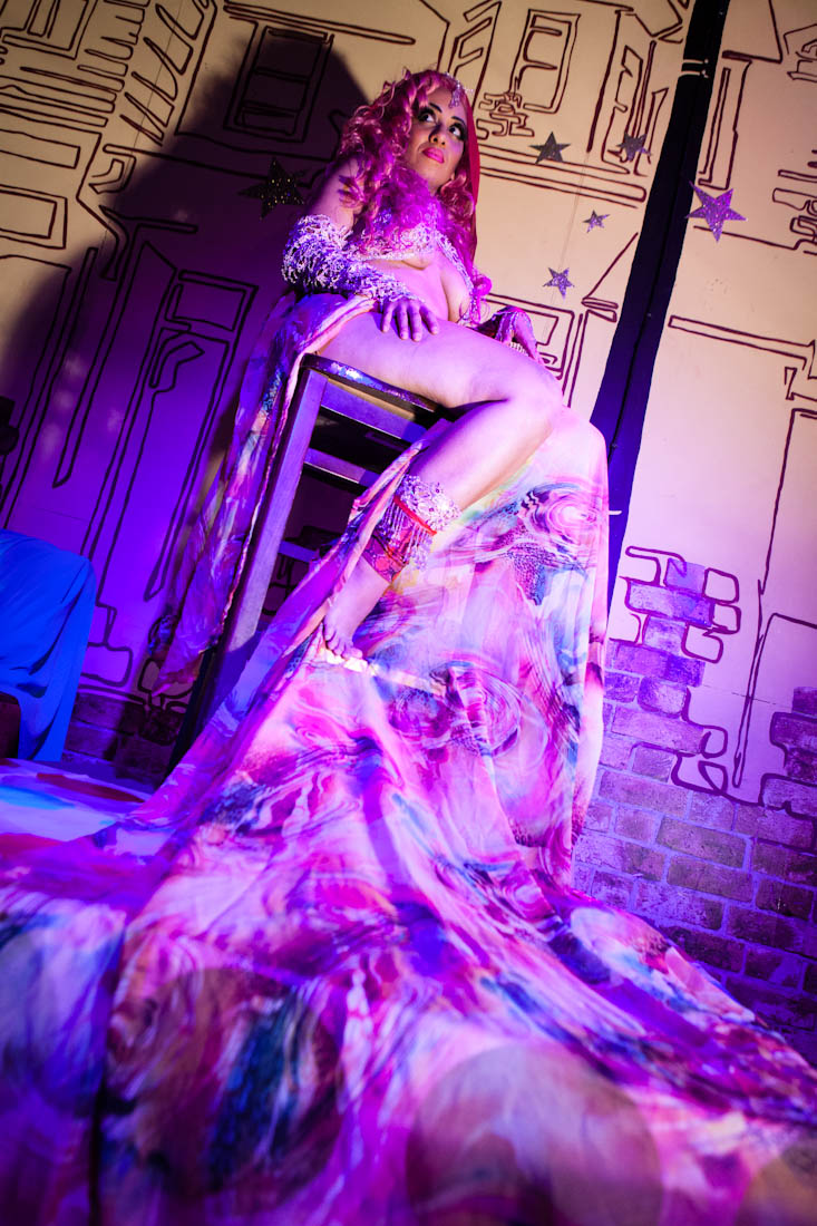 Making her first costume change, Obskyura returned to pose in a pink Bollywood look - a costume that simultaneously had a lot of, and very little, fabric.