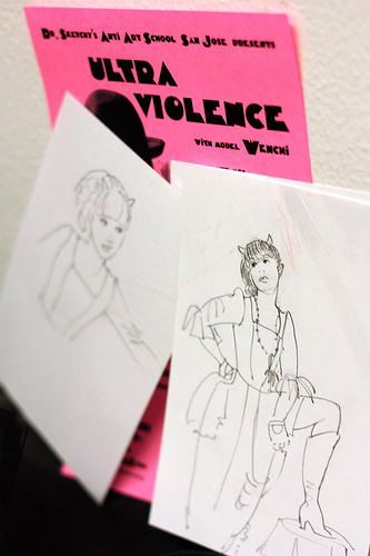 Dr. Sketchy's San Jose showed up to the student galleries opening receptions yesterday to promote our Ultra Violence session next week. We handed out lots of flyers and introduced several art students to the Anti Art School!