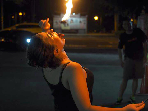 After one final costume change, Caecilia took us outside where she ate fire and fire danced, mesmorizing not only our artists, by pedestrians, vehiclists and other passersby!