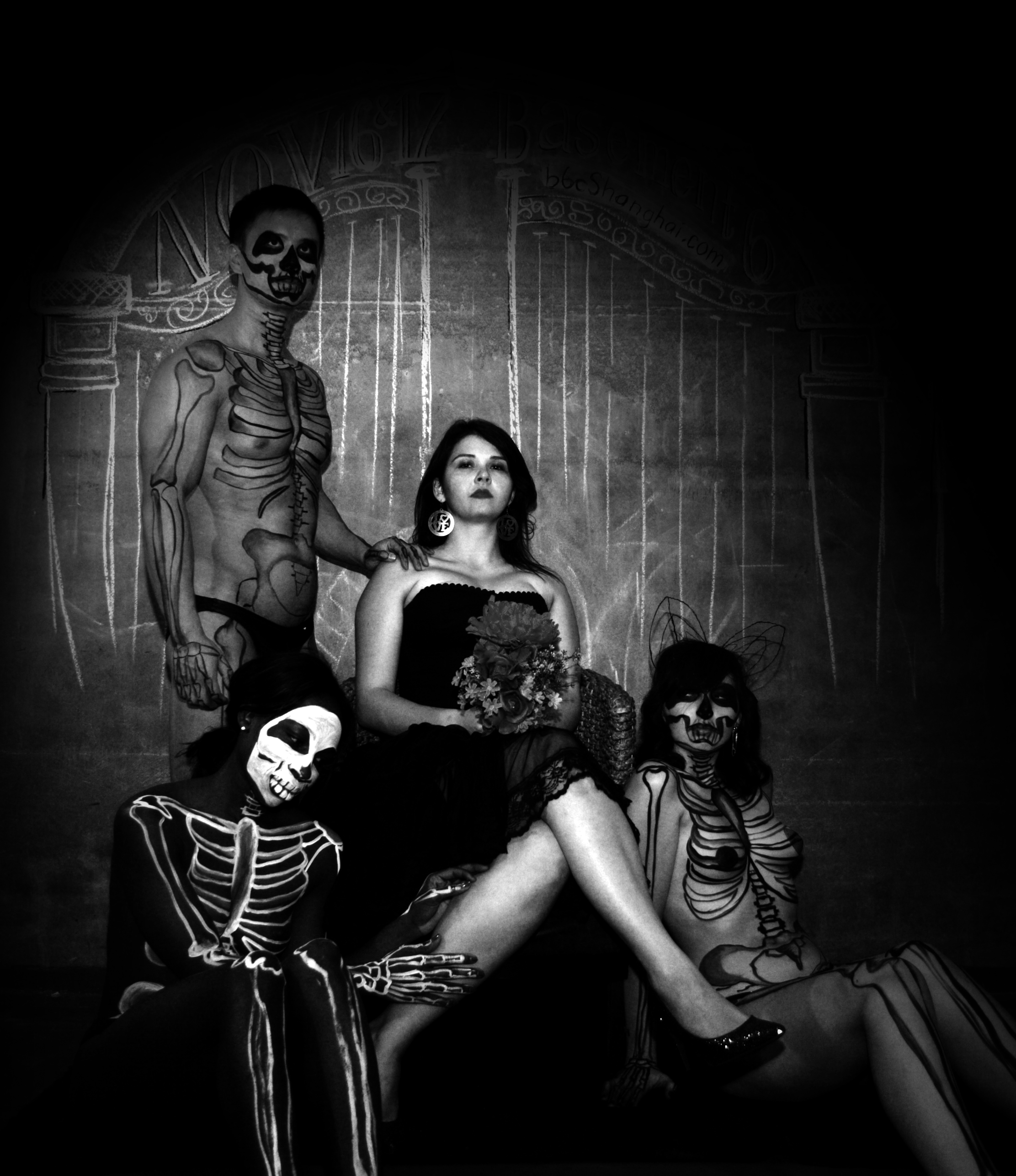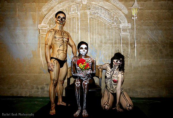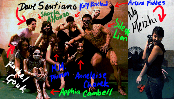 First off, we'd like to thank Basement 6 Collective for partnering with us in producing this event and being insanely beautiful, hard-working artists in general. Thanks to them, Bloc will be transformed into a full-on pseudogothic wonderland where our models will strut for the artistic appreciation of all. Special thanks to Katy Roseland for getting so many folks on board with her outlandish enthusiasm, as well as making our promotional poster, our pasties, and the graveyard backdrop for our teaser photos; to Arlene Fiddes for MAKING ALL THE COSTUMES FOR THE EVENT BY HAND (!?!?!?!) and project managing this 'ness like a motherffffer; and to Anneleise Charek for lending a huge helping hand with the bodypainting and handling loads and loads of deliveries of cardboard and other assorted insane materials. (And potentially for videography. Fingers are crossed.) Other special thank-yous go to our photographers, Rachel Gouk, Dave Santiano, and Ng Meizhi, who wasn't in the group shot below as she was taking the picture. The image has been adjusted accordingly.