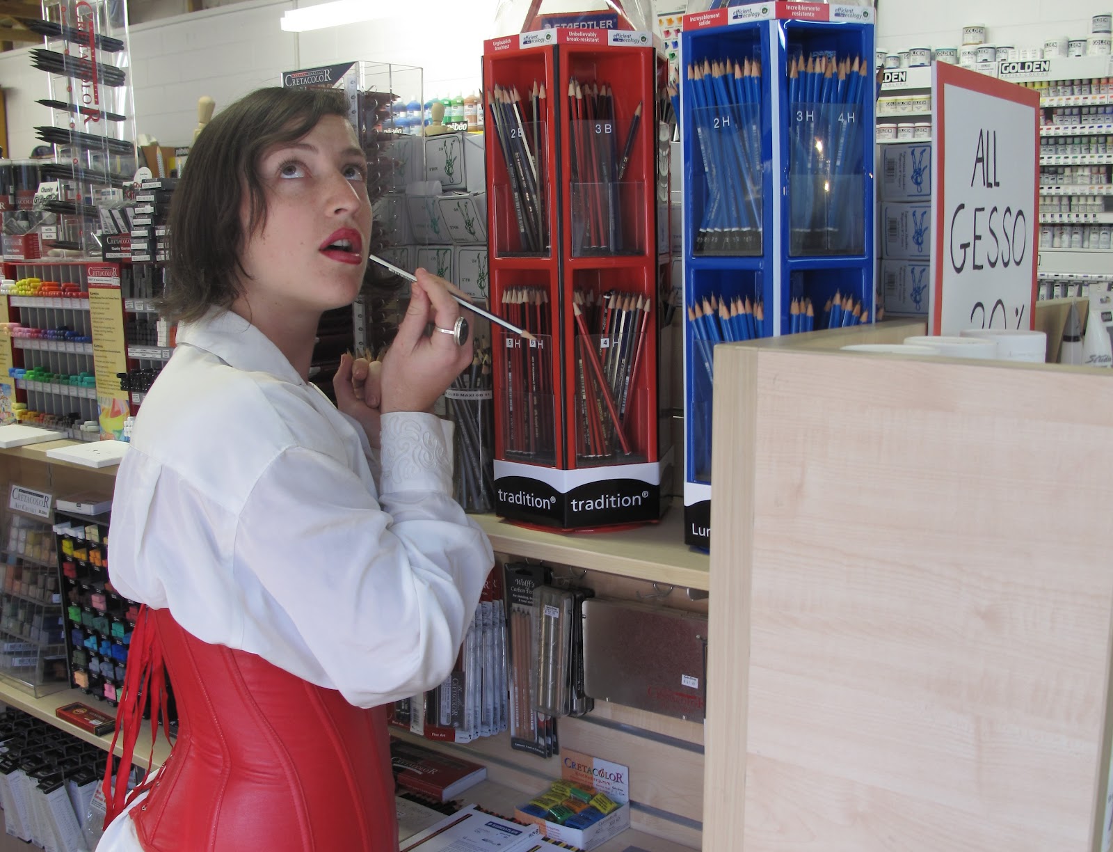 The Christchurch Sketchy Girls, Tawdry and Rosie, paid a visit to our sketchiest sponsor - Gordon Harris. Purveyors of supplies for fine art, design and all kinds of creative pursuits. Their shiny new premises are nestled on Southwark St - which runs between Madras and Manchester Streets in our (battered but beloved) CBD. The bright, spacious shop is a haven for creative inspiration and a supply mecca for professionals, the general public and - today in particular - a chic designer and a scantily clad artiste!