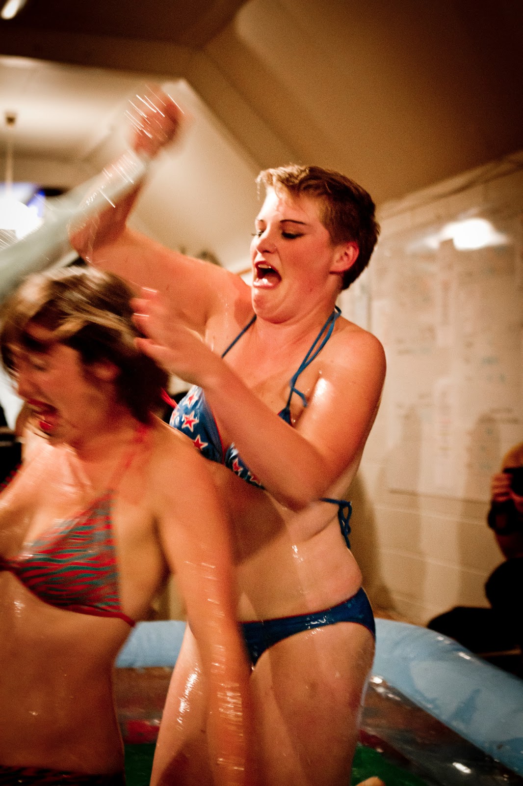 Our beautiful brawlers in a comfy headlock
